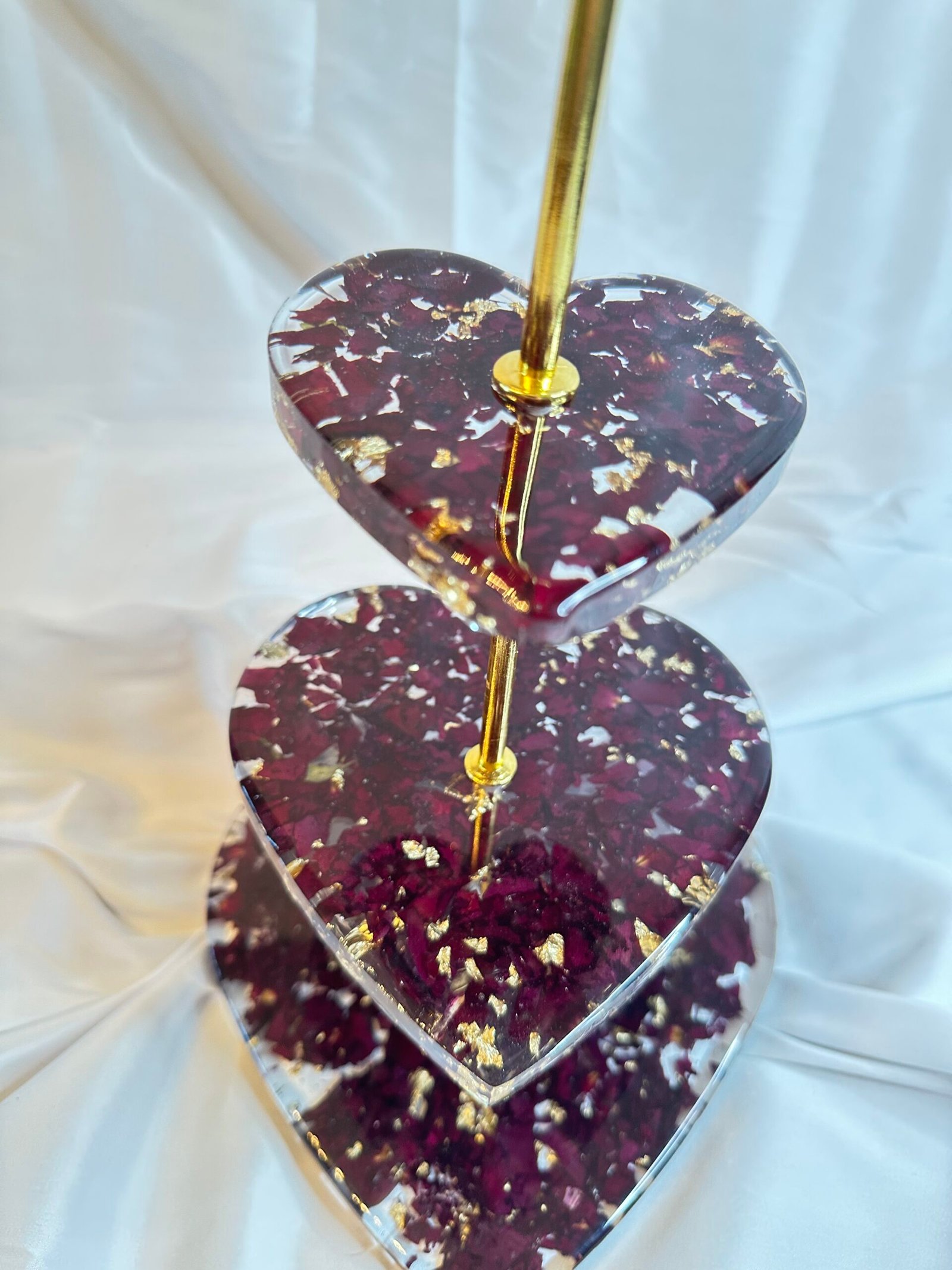 Each detail of this cake stand is created with precision and intent, ensuring it resonates with your heartfelt celebrations. Its delicate heart-shaped design is ideal for elevating your favorite confections—be it a multi-layered wedding cake or a modest batch of cupcakes. The stand serves not just as a display item but as a meaningful token of love, making it particularly suitable for those cherished ‘petals’ in your life.